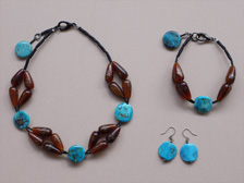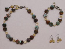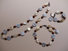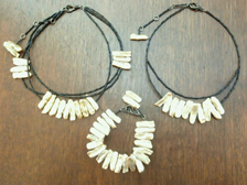 ジュエリー / グリーンアンバー(琥珀)、ブラックスピネル、白蝶貝、ラブラドライト